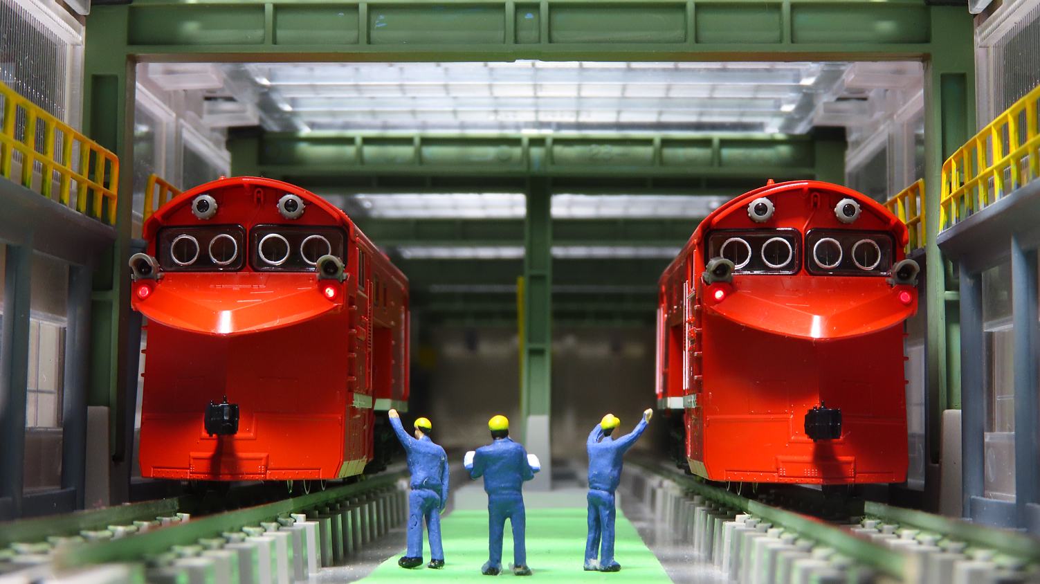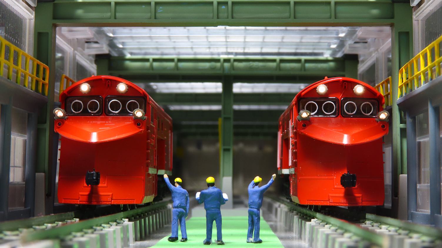 では検修庫で撮影です。