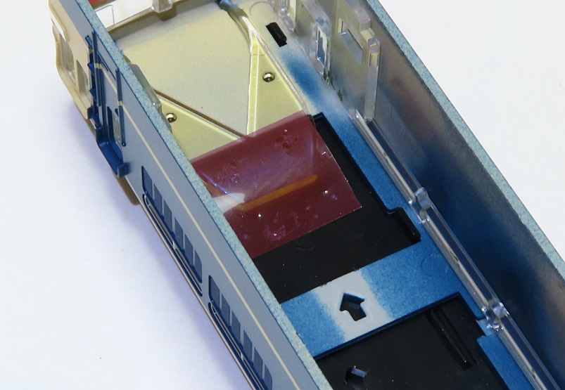 色味補正用のフィルターを少量のゴム系接着剤で取り付けます。