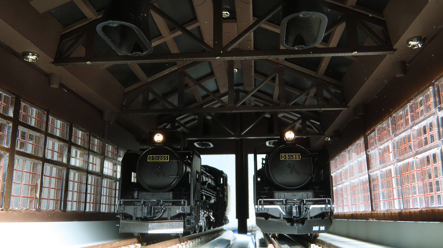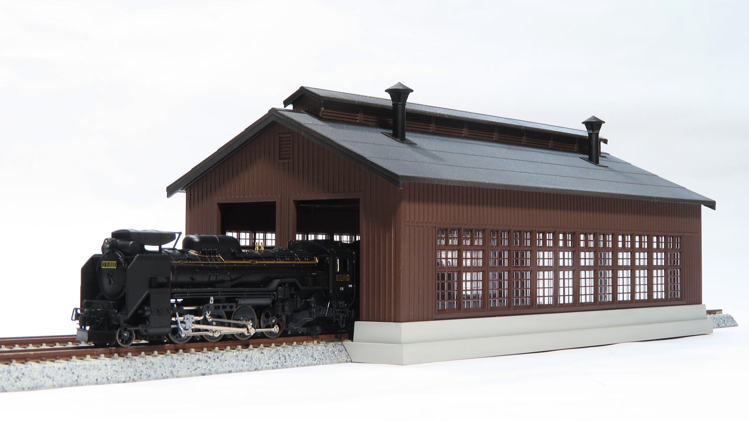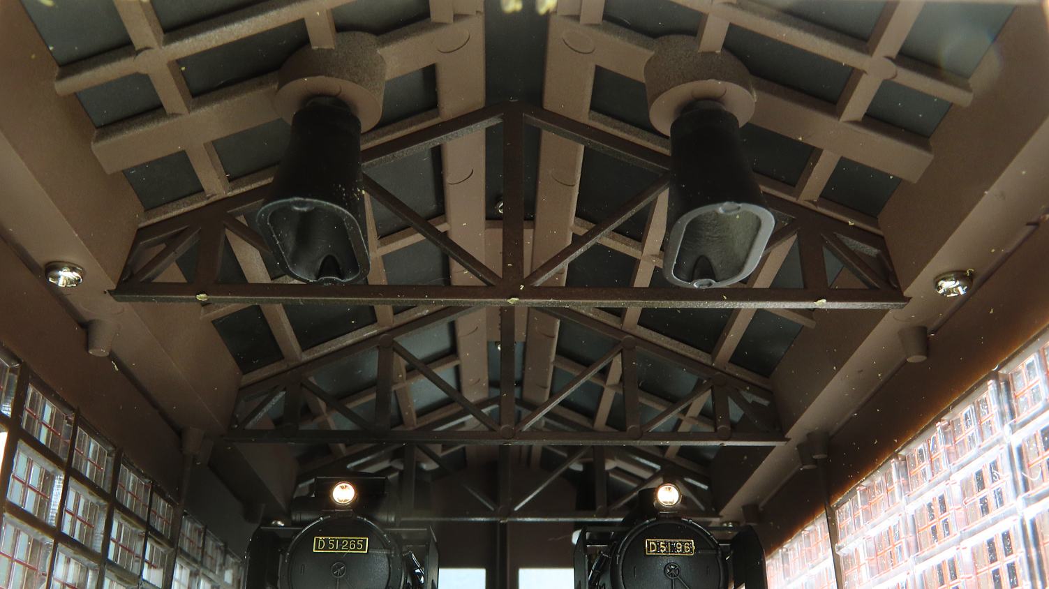 実際の機関庫の屋根はススで真っ黒だったんでしょうね…。