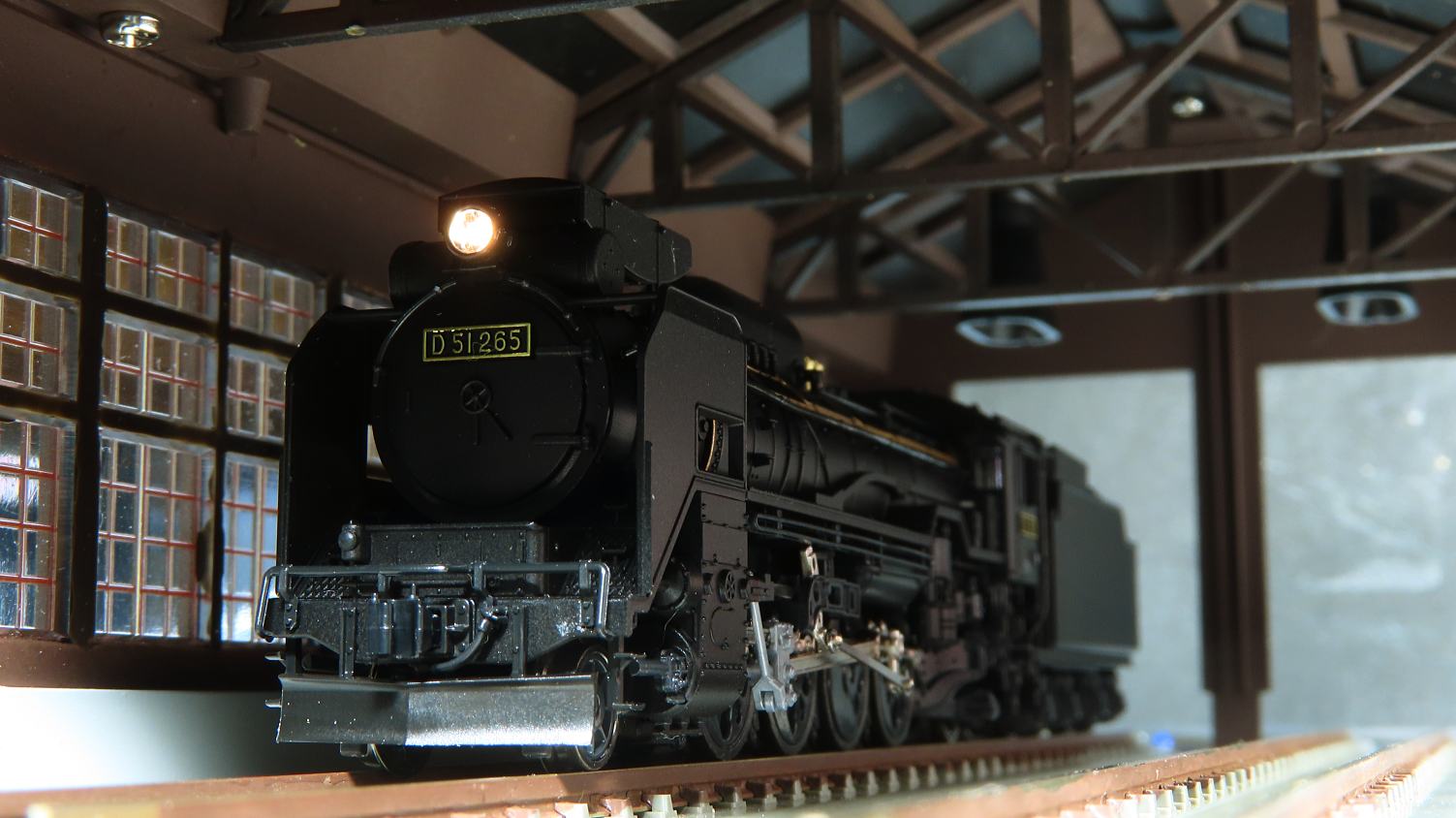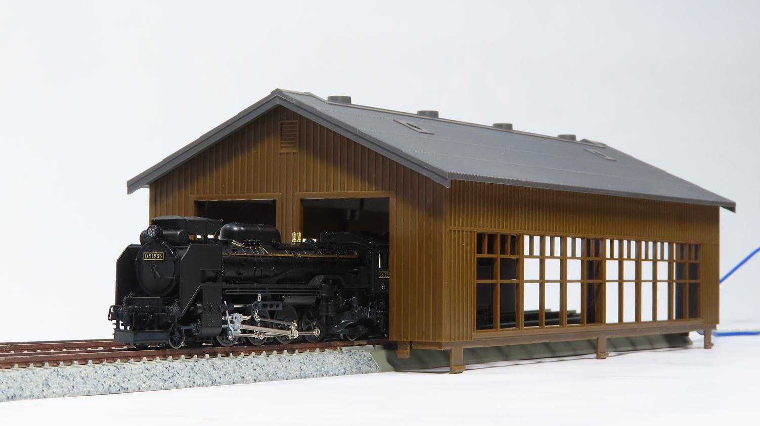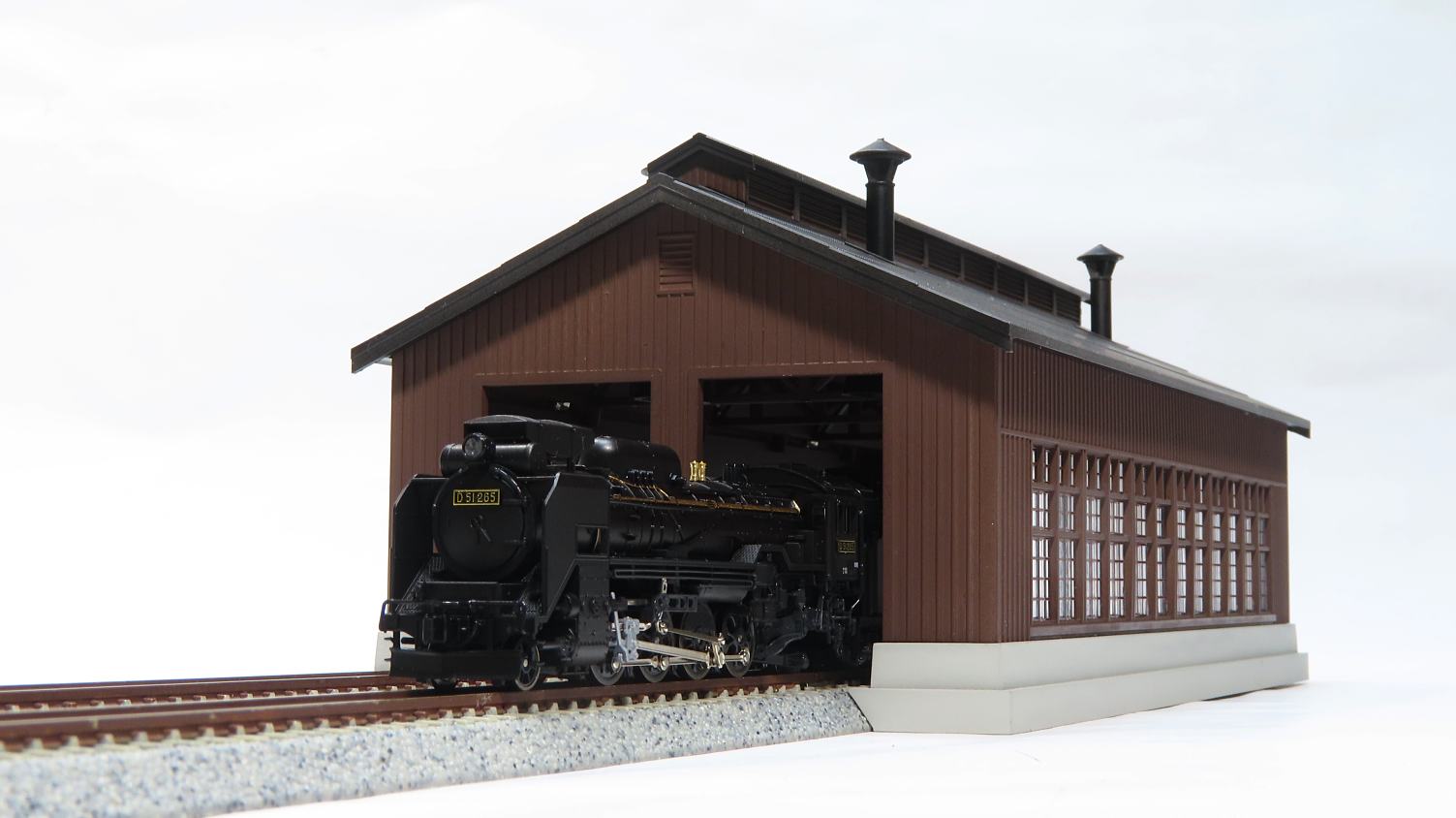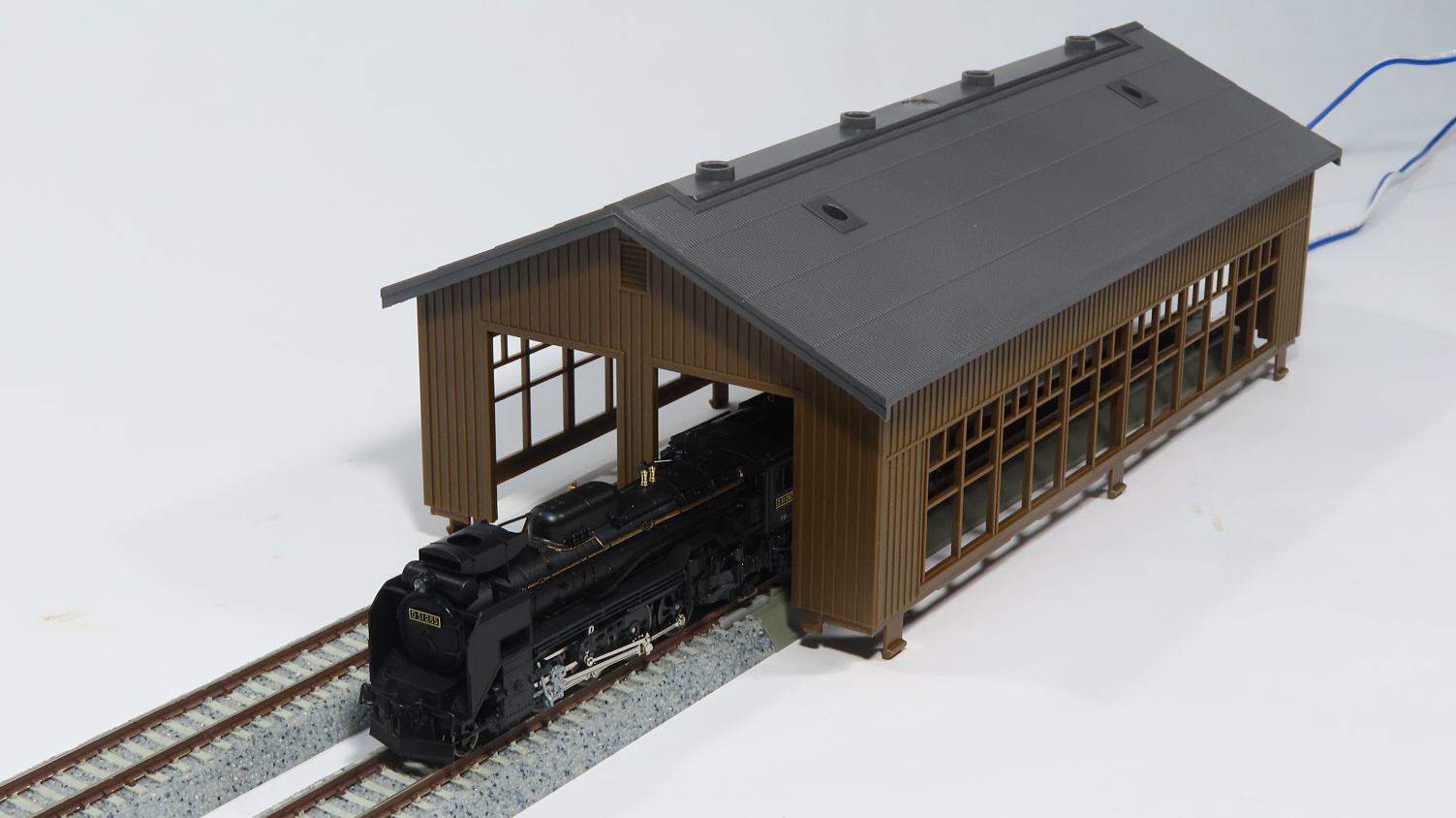 実際の機関庫の屋根はススで真っ黒だったんでしょうね…。