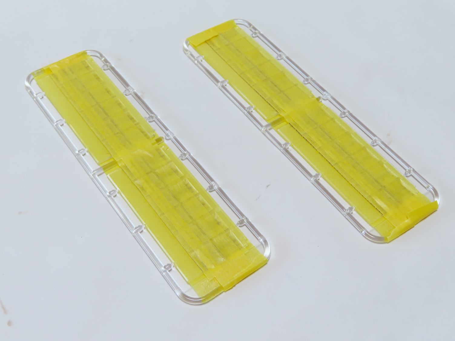 窓ガラスパーツの内壁になる部分を塗装するため窓部分をマスキング。
