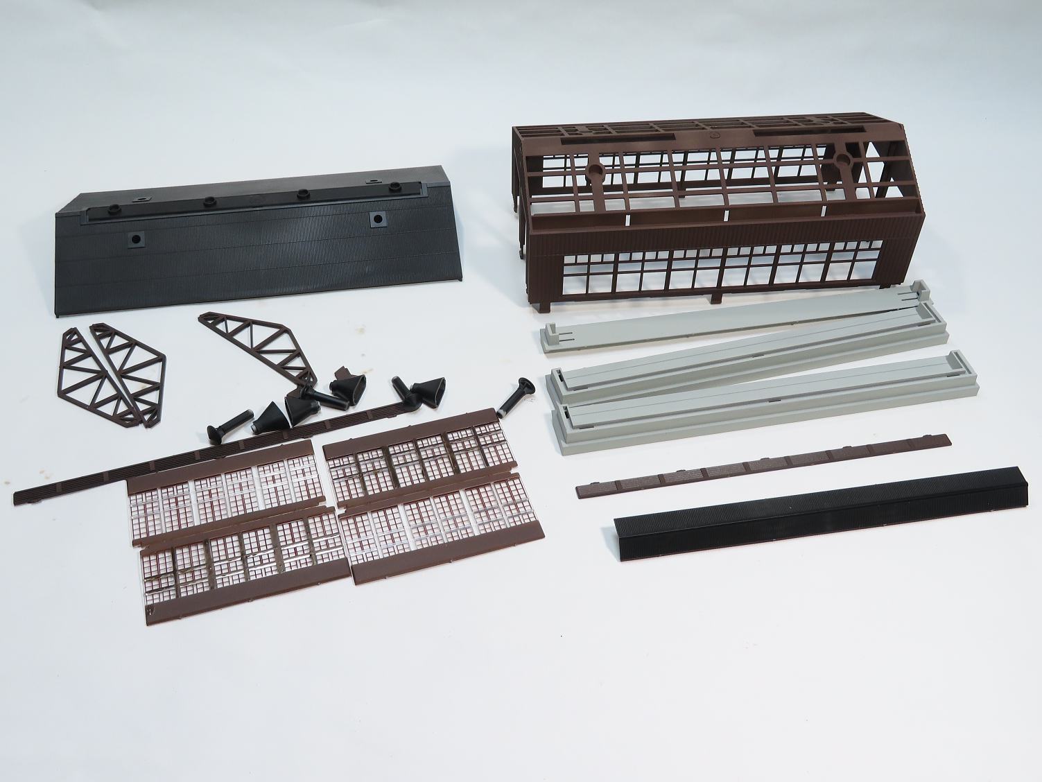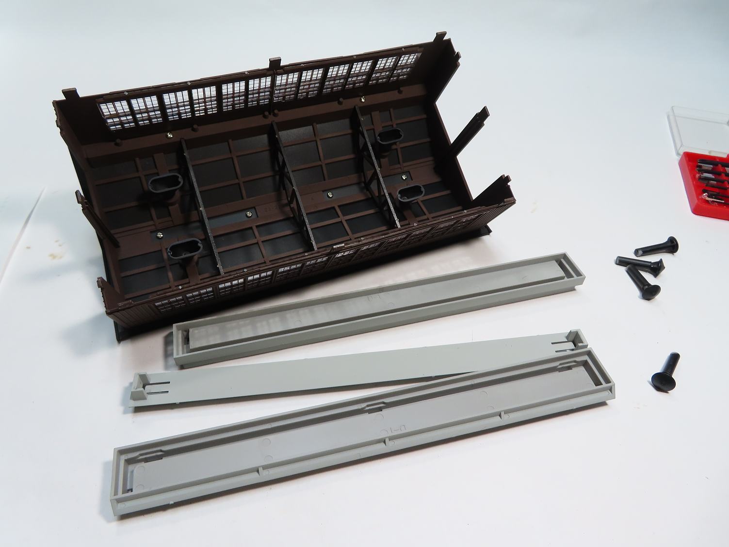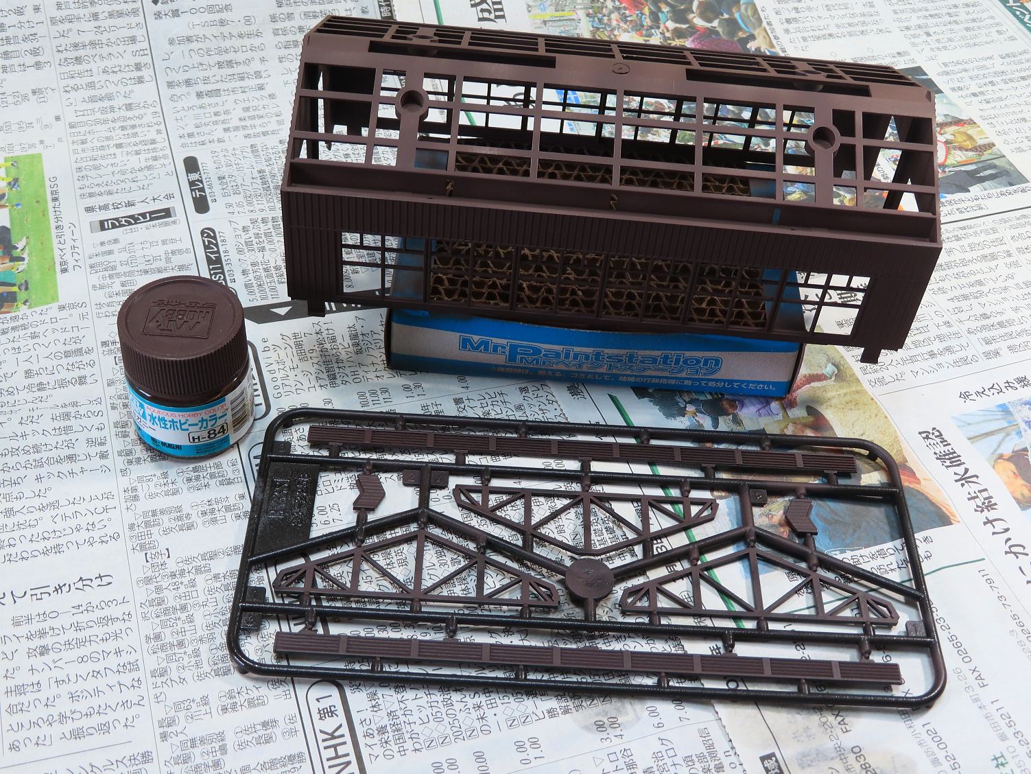 建屋と梁はクレオスH-84マホガニーで塗装。