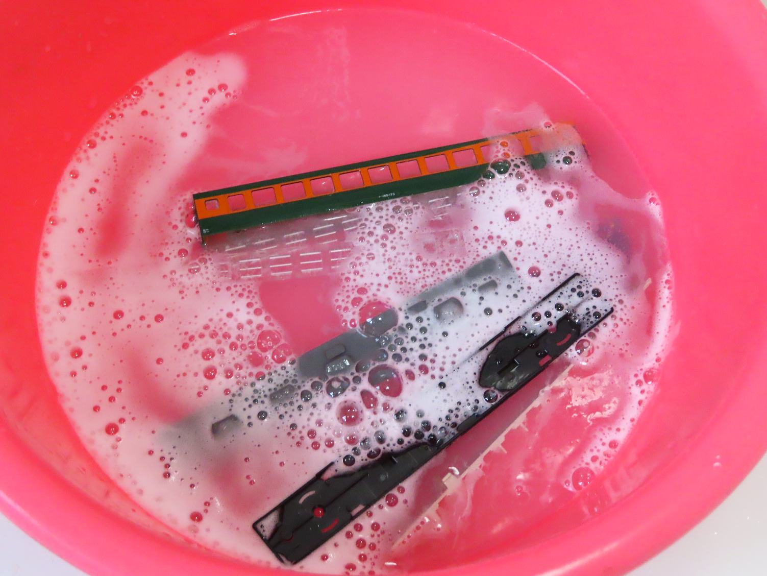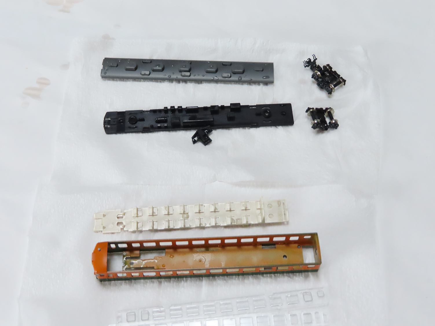 車体・床板・窓ガラス・台車に入浴してもらいます(^^;