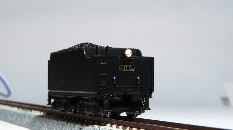 ボイラーを載せ、テンダーも連結して常点灯テストです。