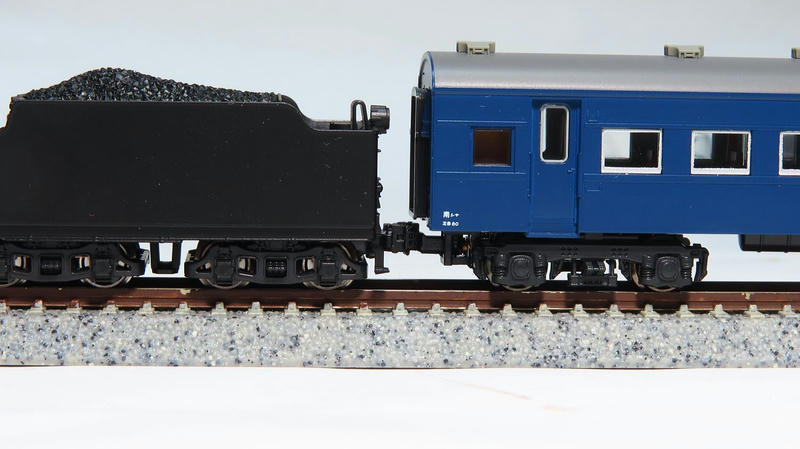 KATOカプラーN JP-Bを取り付けたスハ44と連結して高さと連結面間隔の確認。