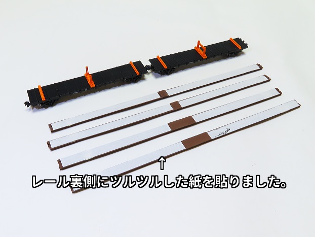 そこで積載レール裏面にツルツルした紙を貼り付けました。