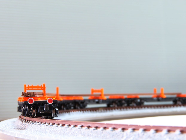 継ぎ目のないまっすぐなKATOレールのように荷台が傾こうとするのをジャマをせず、素直にカーブを通過できるようです。