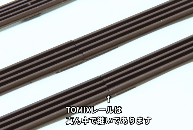 チキ付属のTOMIXレールはチキ1両分の長さしかありませんので2本を継いであります。