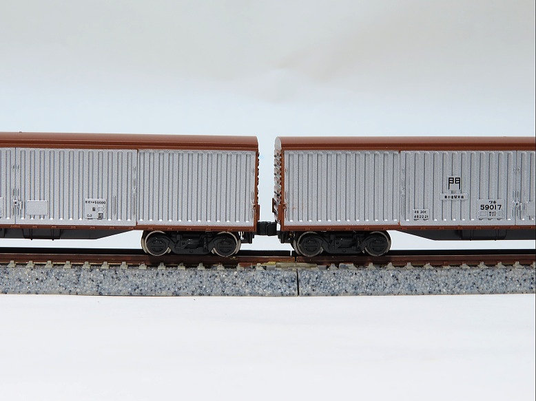 車間短縮ナックルカプラーは自動連結できないのが欠点ですが、連結面間隔がリアルなのでヨシとしています。
