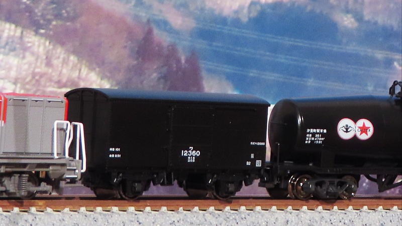 他の貨車と連結してカプラー高さを確認です。