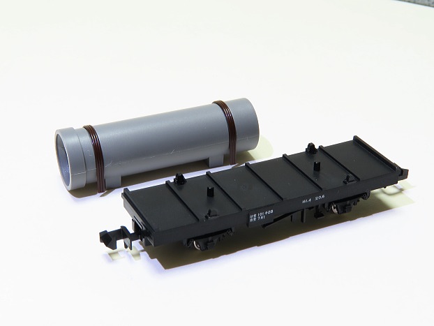 実際のチ1はレール輸送のチキと組み合わせて遊車として使われる場合が多かったらしいですが、検索して調べてみると台車や廃車体を積載している写真がありましたので、いろいろな使い方があったようです。