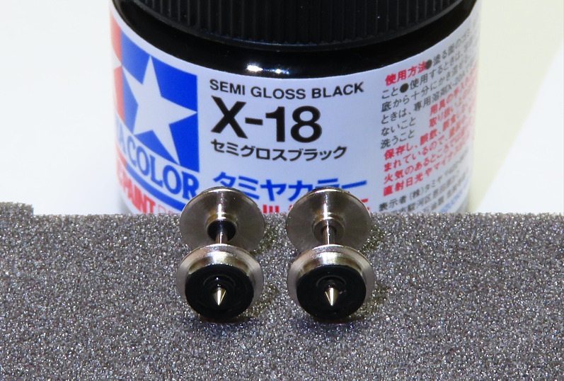 車輪側面をタミヤX-18セミグロスブラックで塗装します。