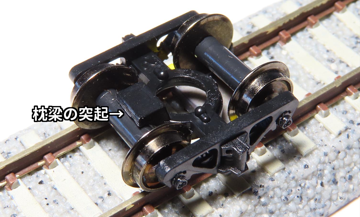 KATO中空軸車輪は車軸が太いため台車の枕梁の突起と干渉することがわかりました。