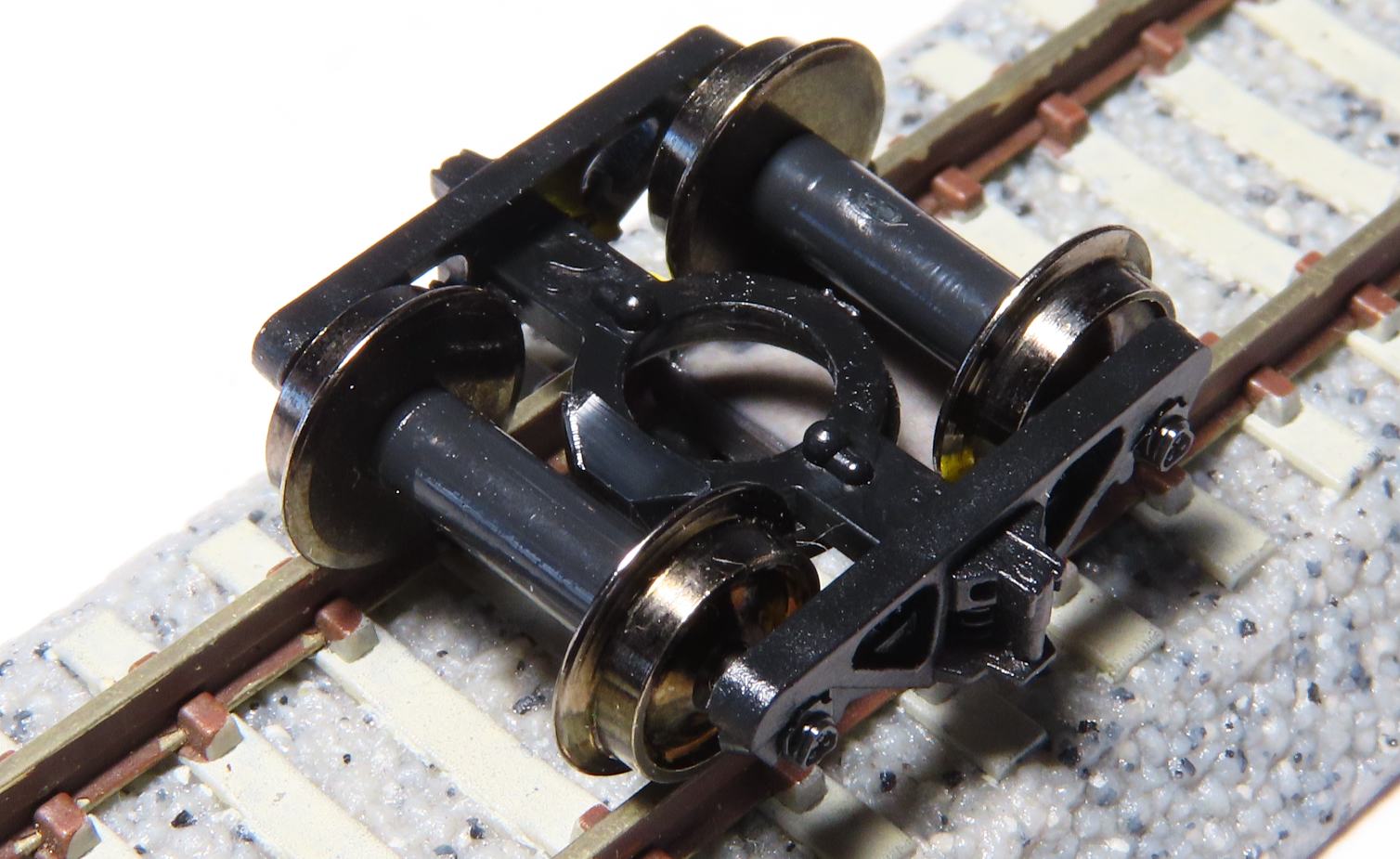 そこで交換用にKATO中空軸車輪(ビス止め・黒)を用意しました。