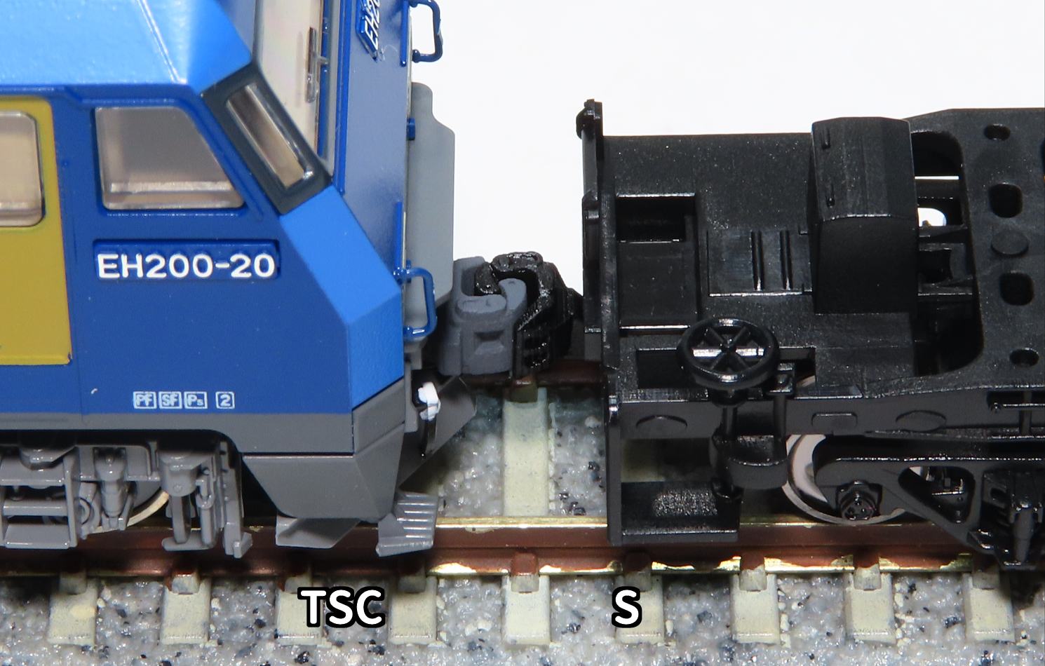 マルチナックルカプラーTSCを装備したKATO EH200と連結です。