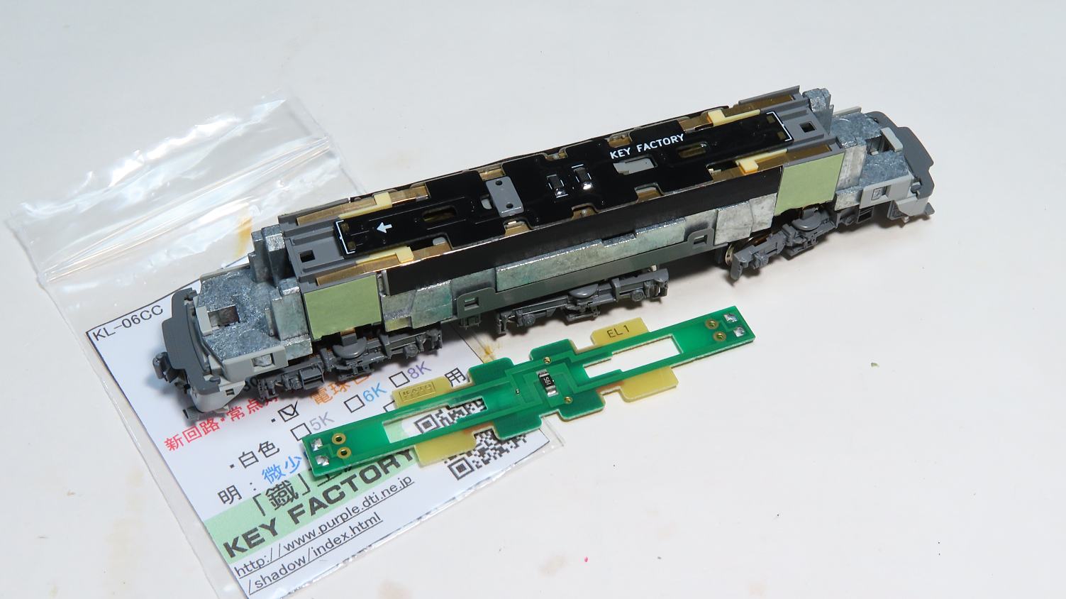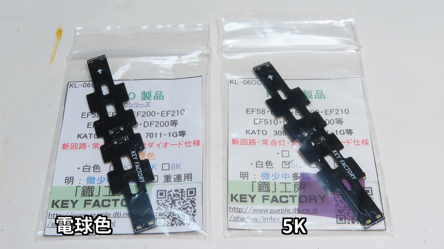 KATO機関車は常点灯しませんので「鐵」工房 KEY FACTORY製高性能ライト基板「KL-06CC電球色」と「KL-06CC LED色5K」を用意。