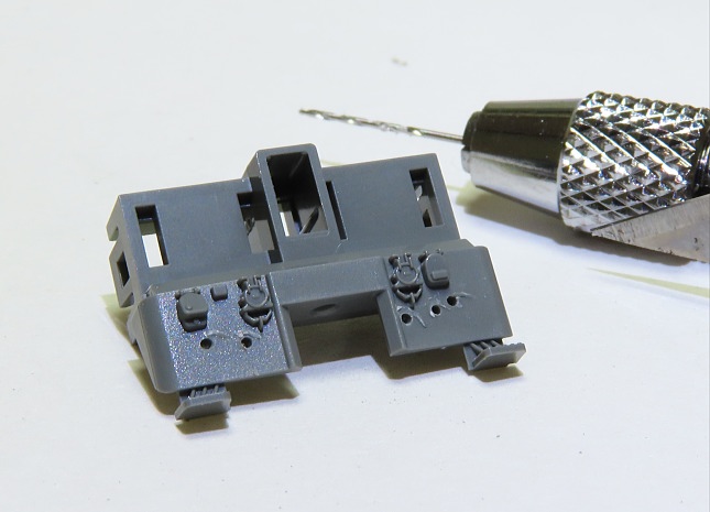 コックのモールドをデザインナイフで切り取り、そこに0.5mmの孔をあけます。