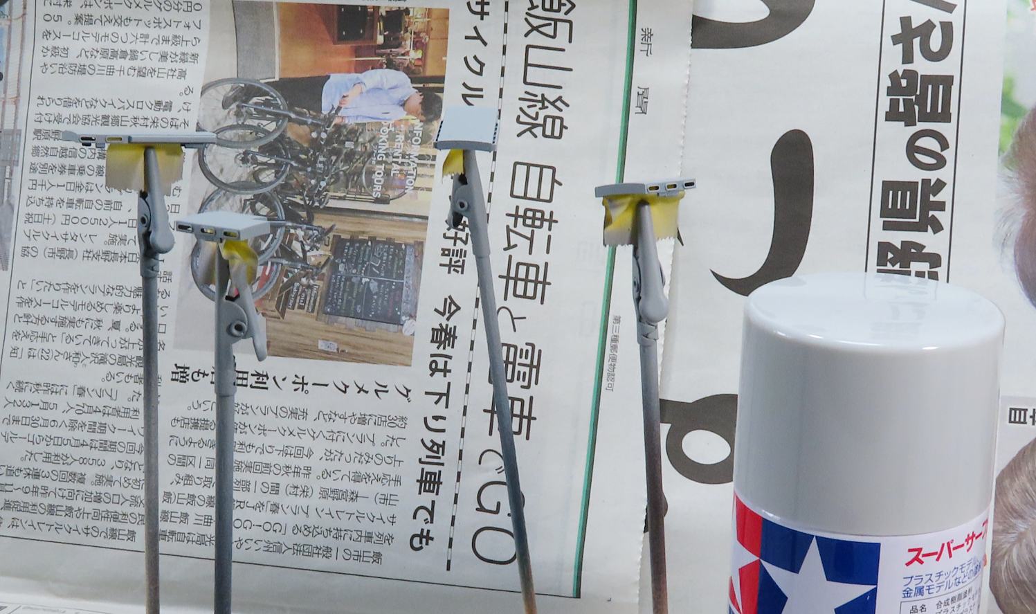 製品はパンタグラフまわりのグレー塗装が省略されていますのでココを塗装します。