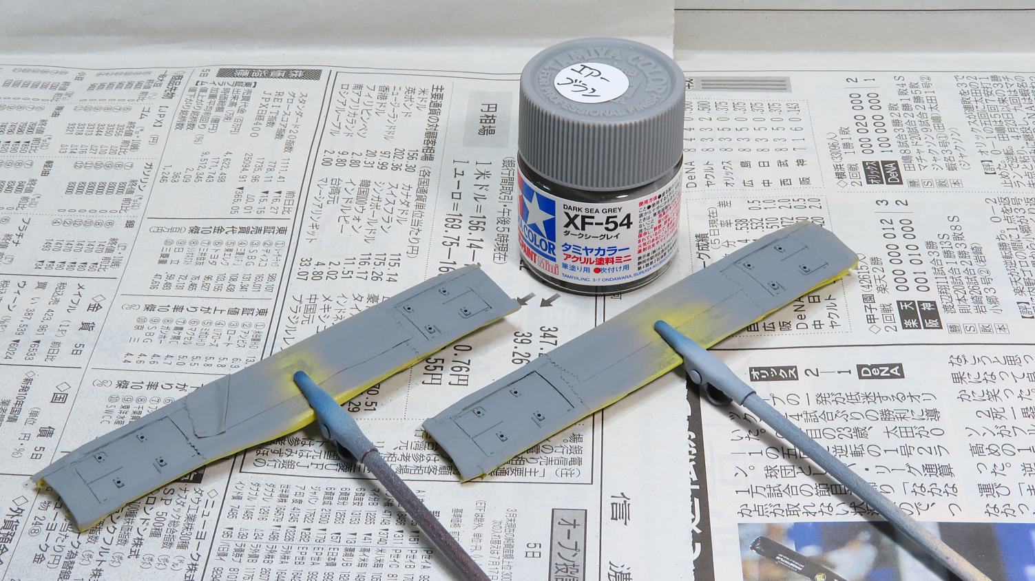 XF-54ダークシーグレーをエアーブラシで塗装です。