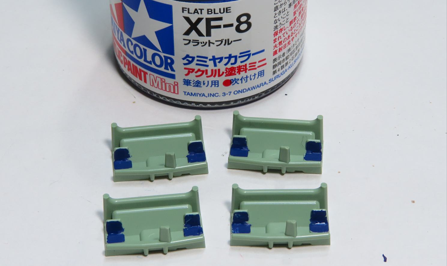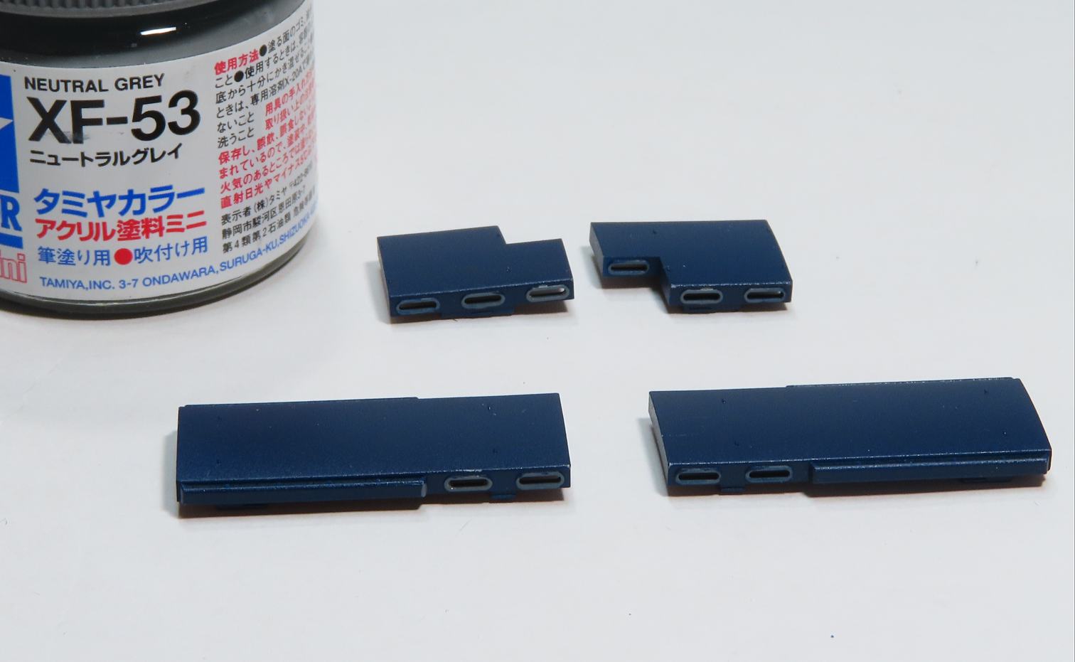 自家調色した青15号(水性アクリル)をエアーブラシで塗装してXF-53ニュートラルグレーでHゴムに色差しです。