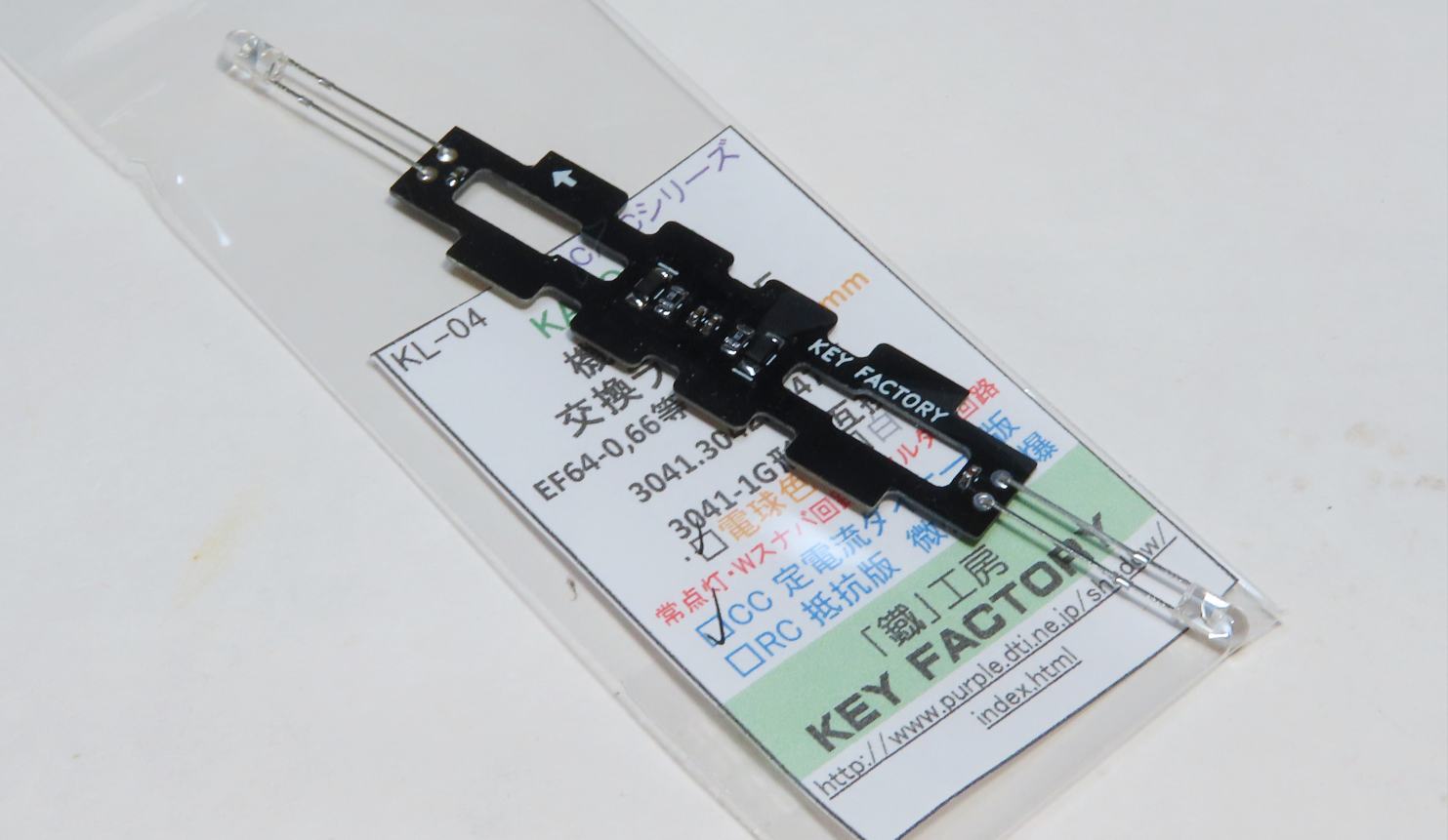 ヘッドライトを常点灯化および明るくするため「鐵」工房 KEY FACTORY製高性能ライト基板KL-04CC電球色を用意。