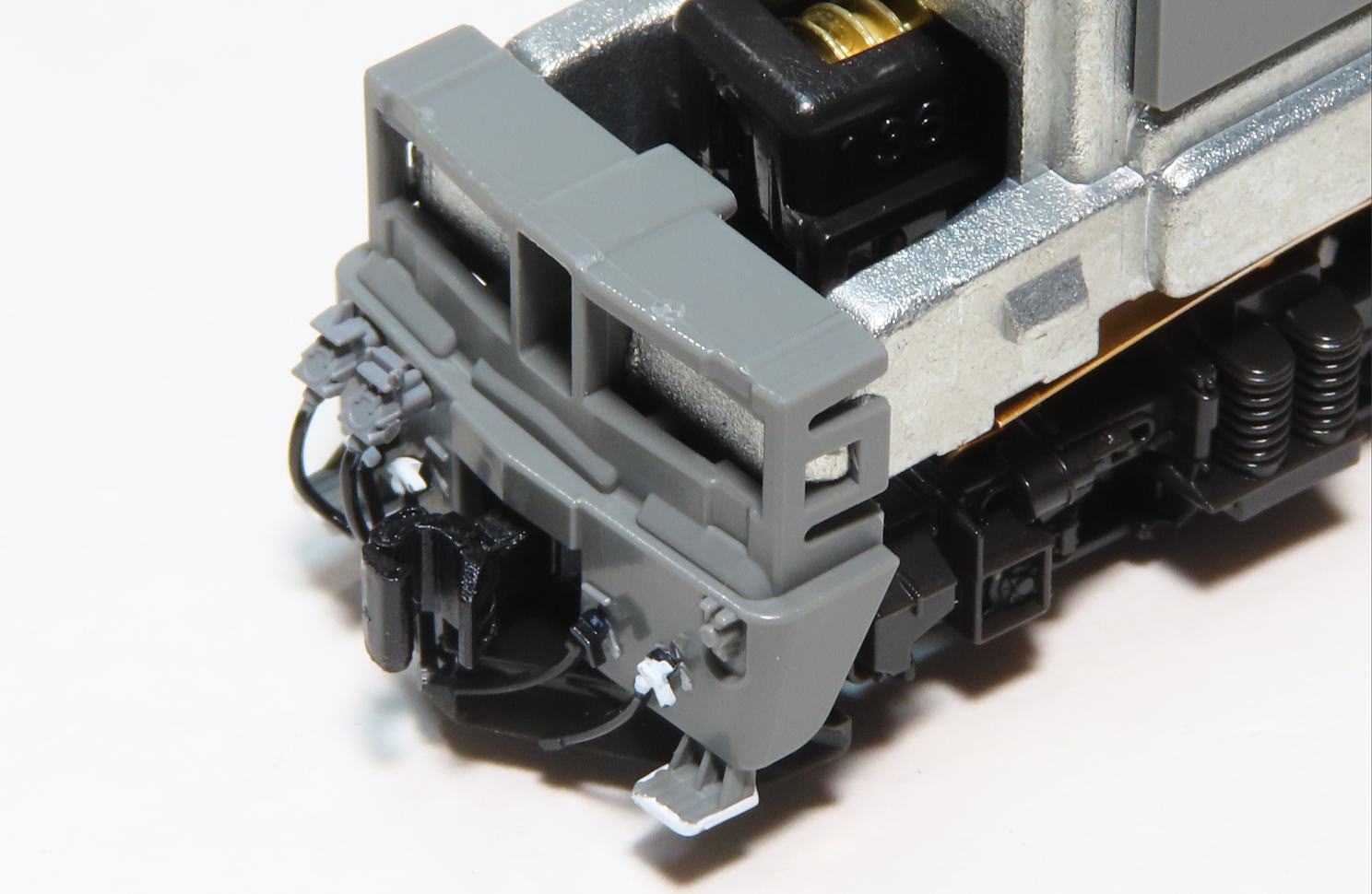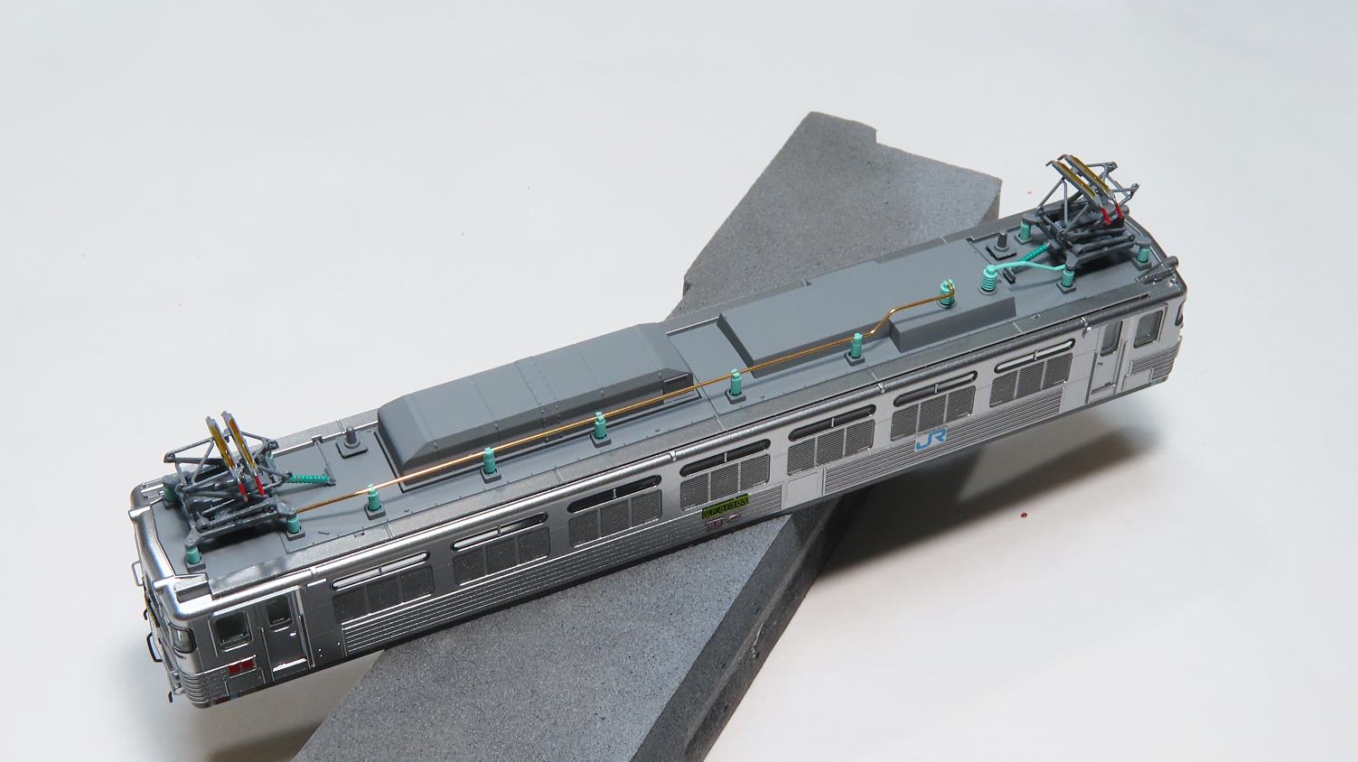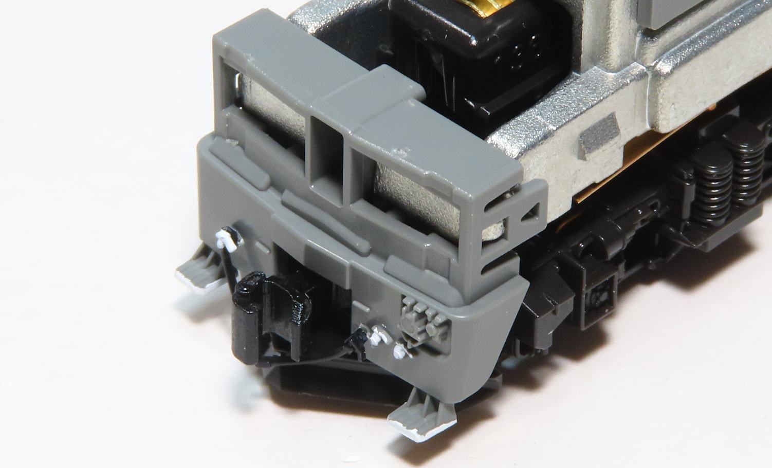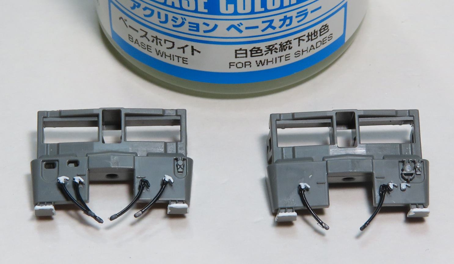 パンタグラフはスーパーサーフェイサーをスプレーしてからH-22ねずみ色で塗装(エアーブラシ使用)