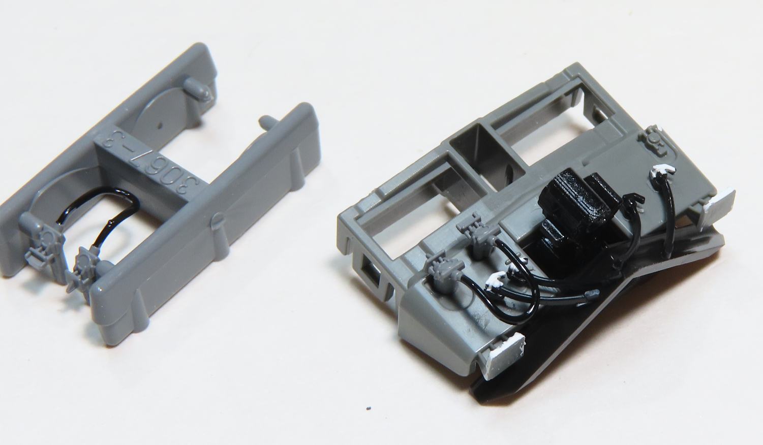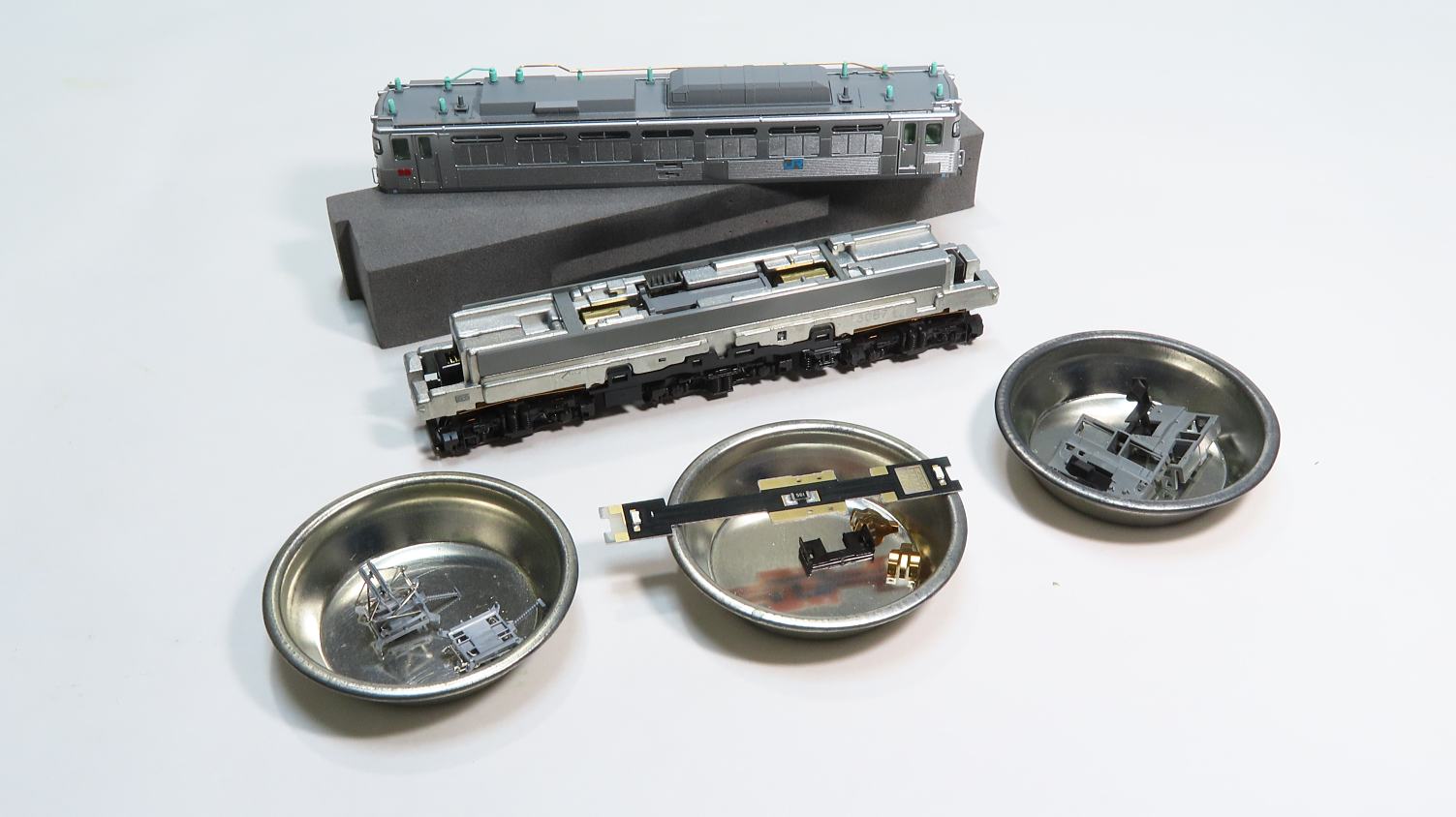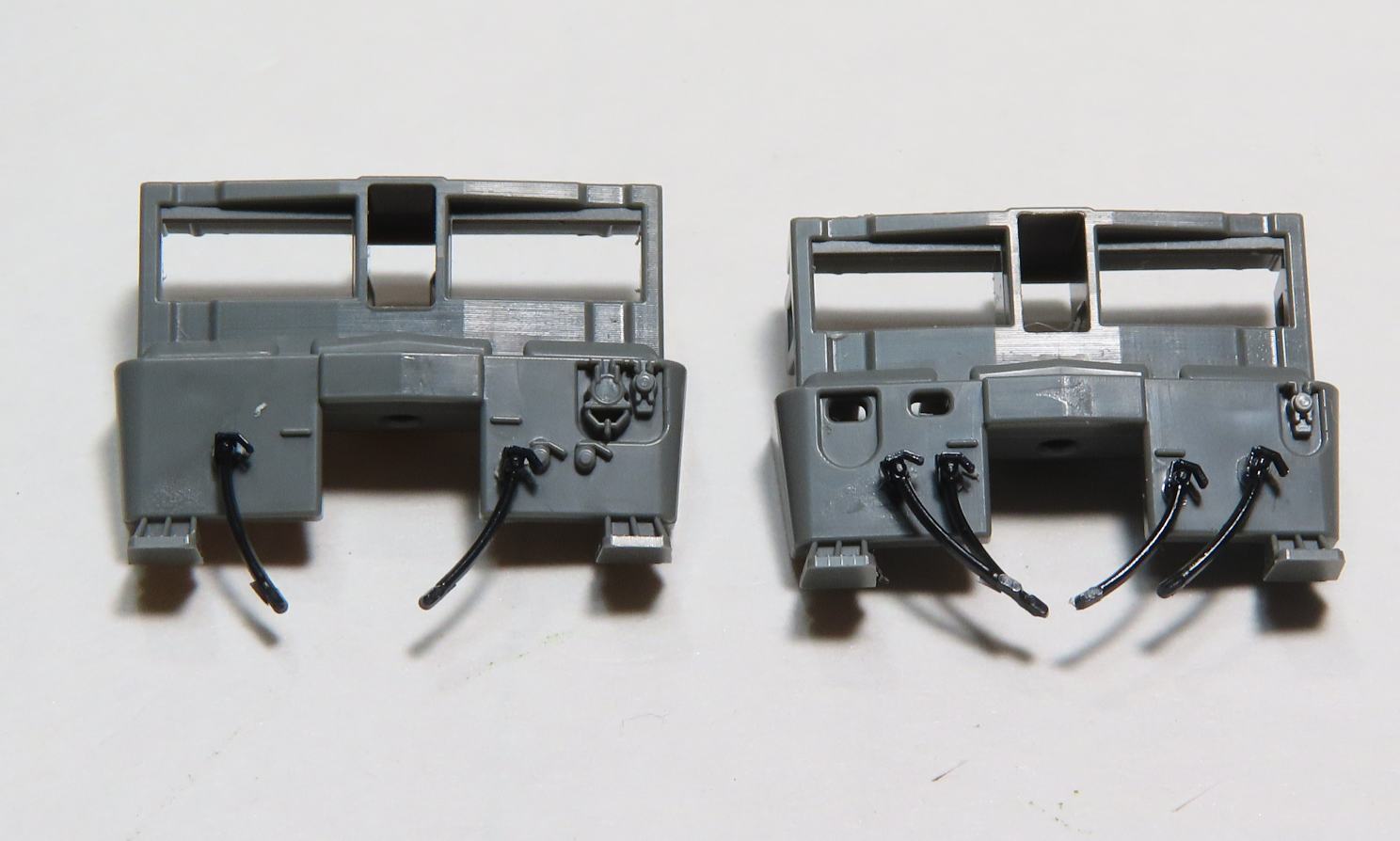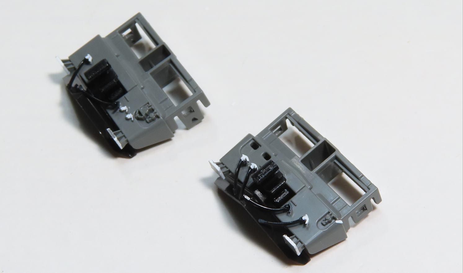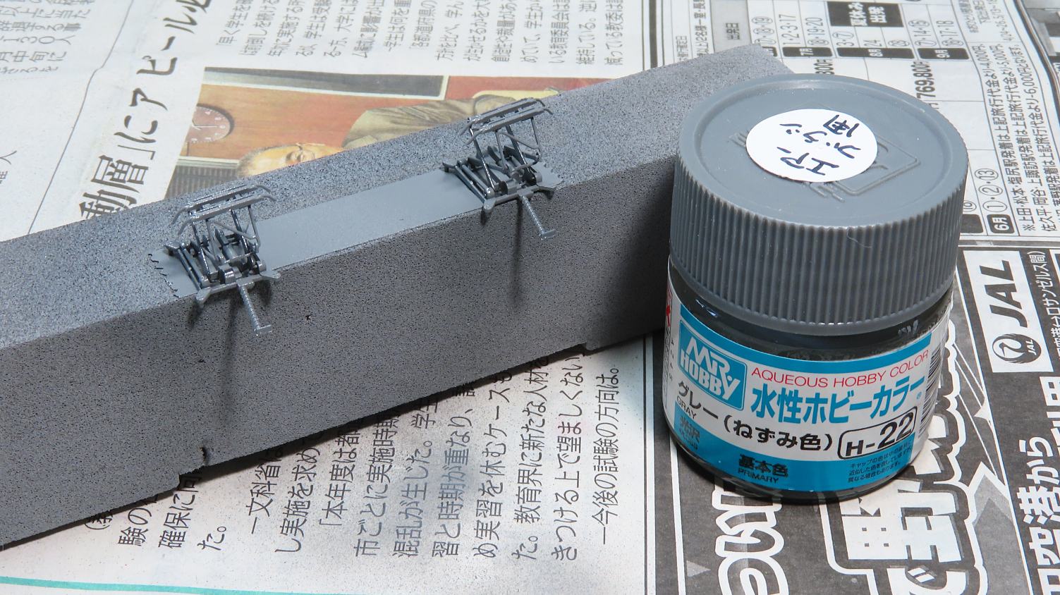 パンタグラフはスーパーサーフェイサーをスプレーしてからH-22ねずみ色で塗装(エアーブラシ使用)
