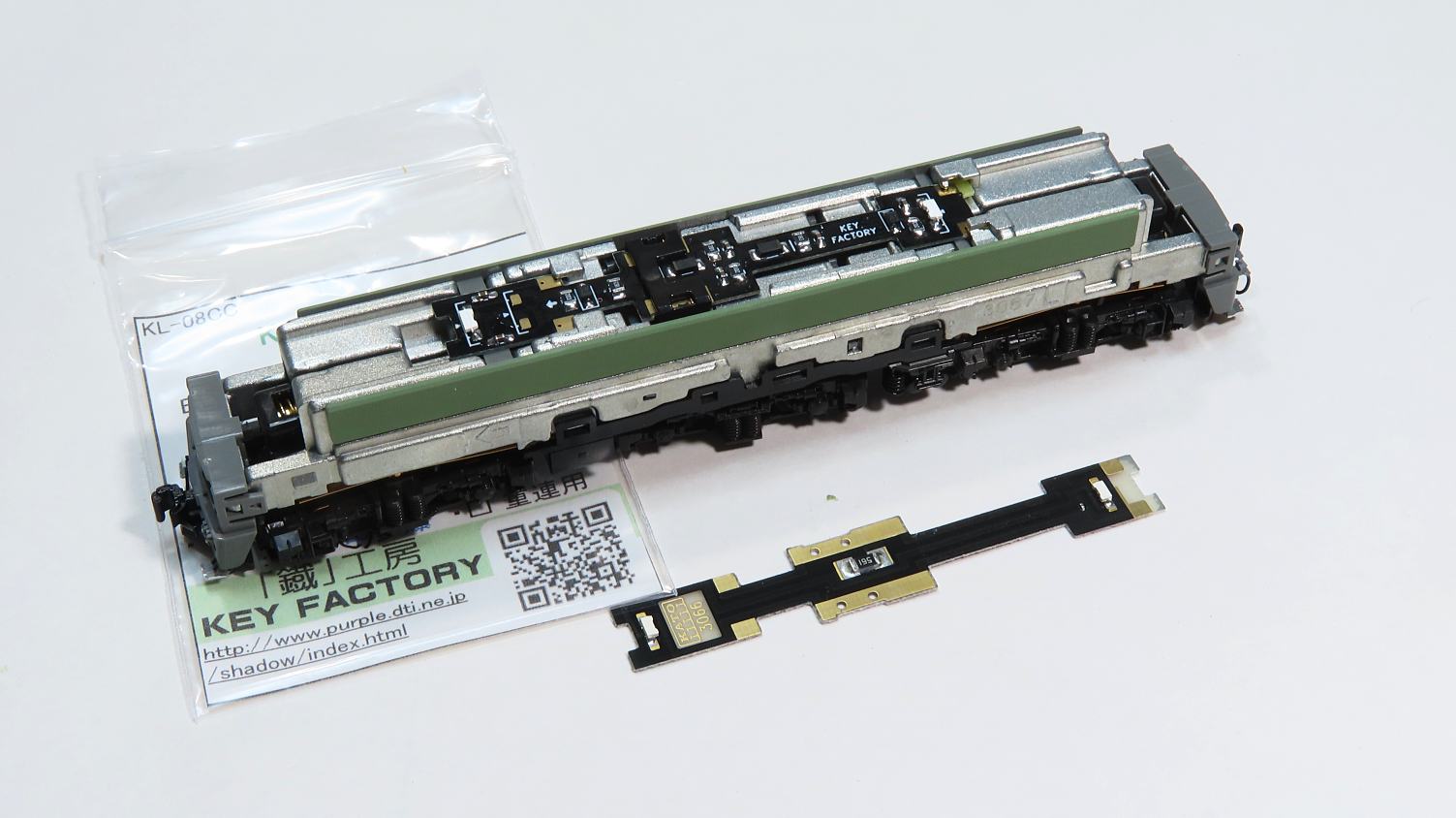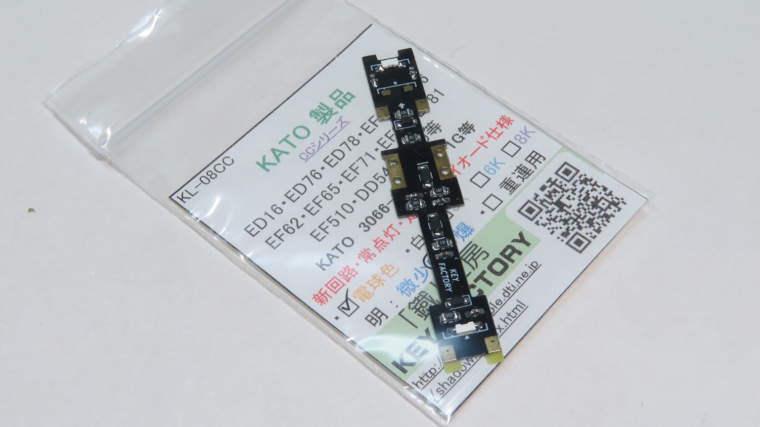 KATOの機関車は常点灯しませんので「鐵」工房 KEY FACTORY製 高性能ライト基板「KL-08CC電球色」を用意しました。
