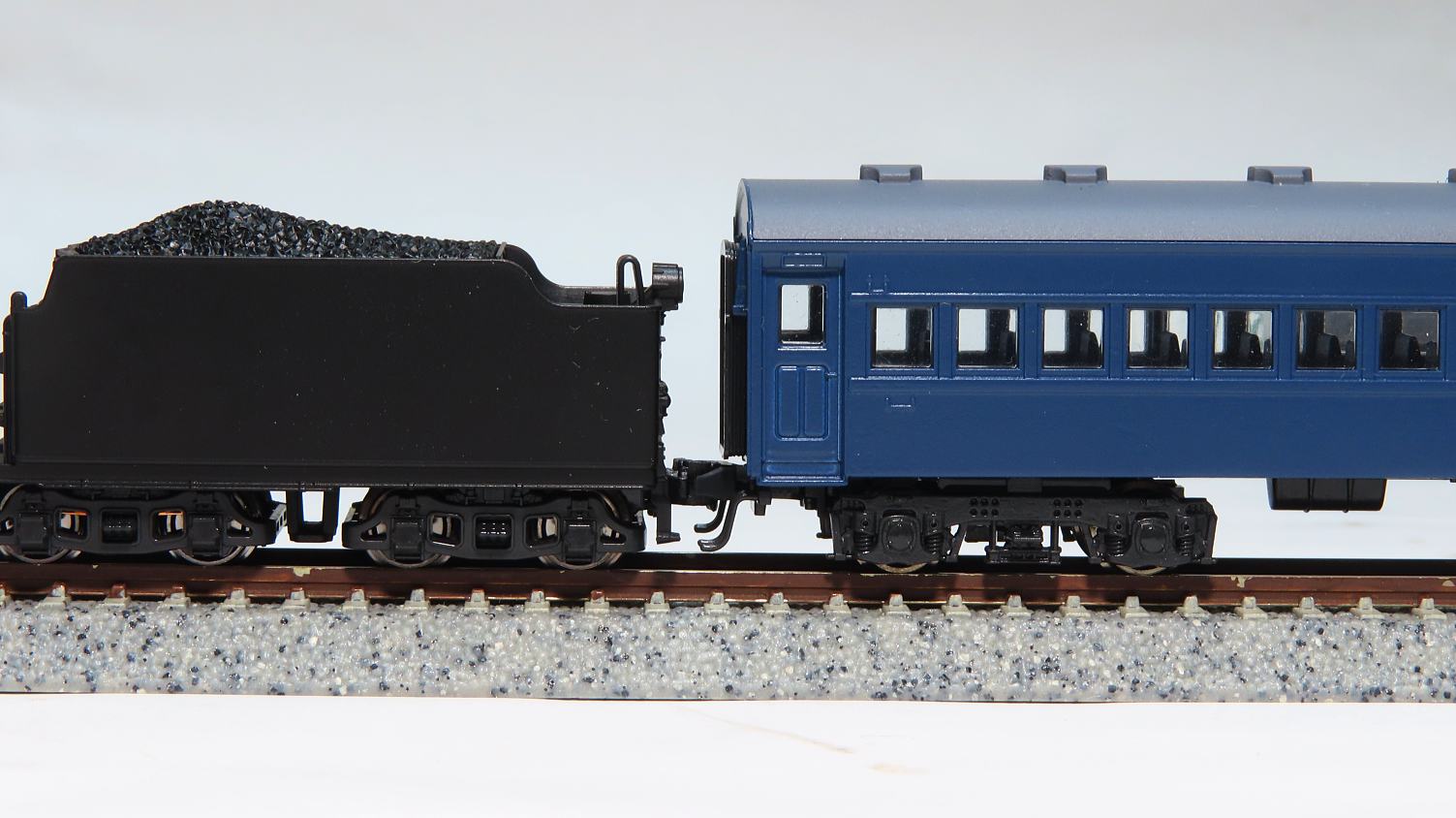 KATOカプラーN JP-Bを取り付けたスハ44と連結して高さと連結面間隔の確認。