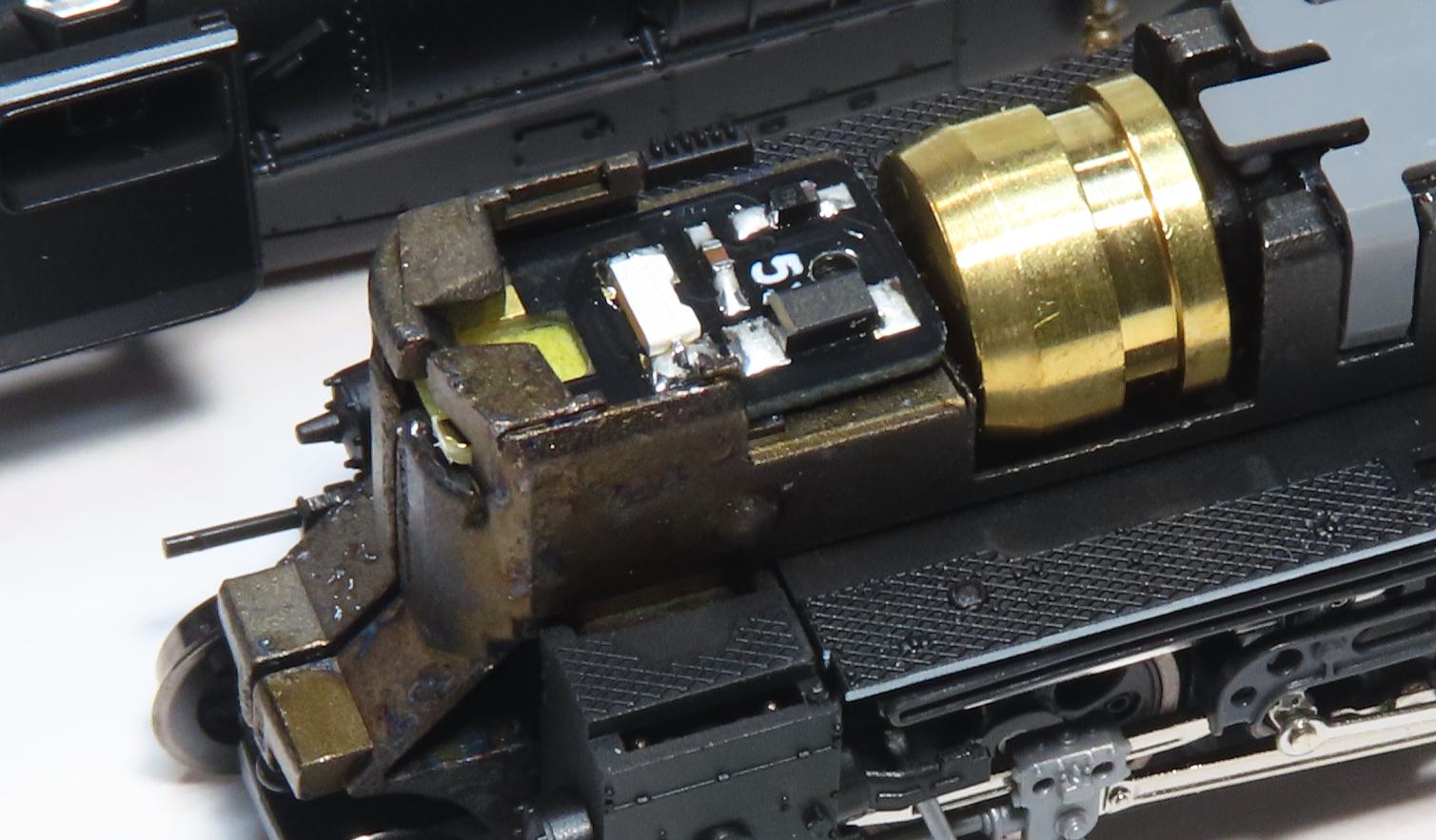 ボイラーを載せ、テンダーも連結して常点灯テストです。