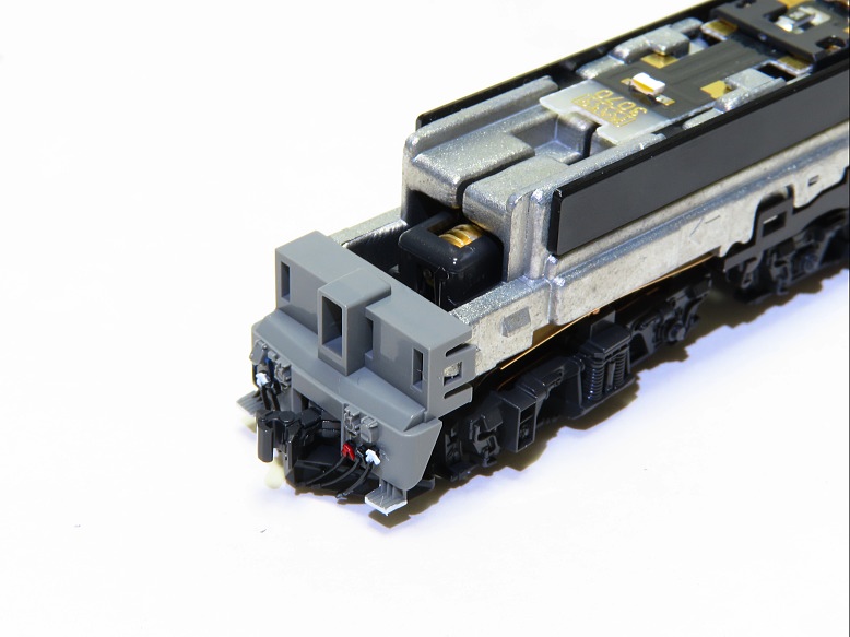 パンタグラフをH-22ねずみ色で塗装し、スリ板にD-6オレンジシロップを色差しします。